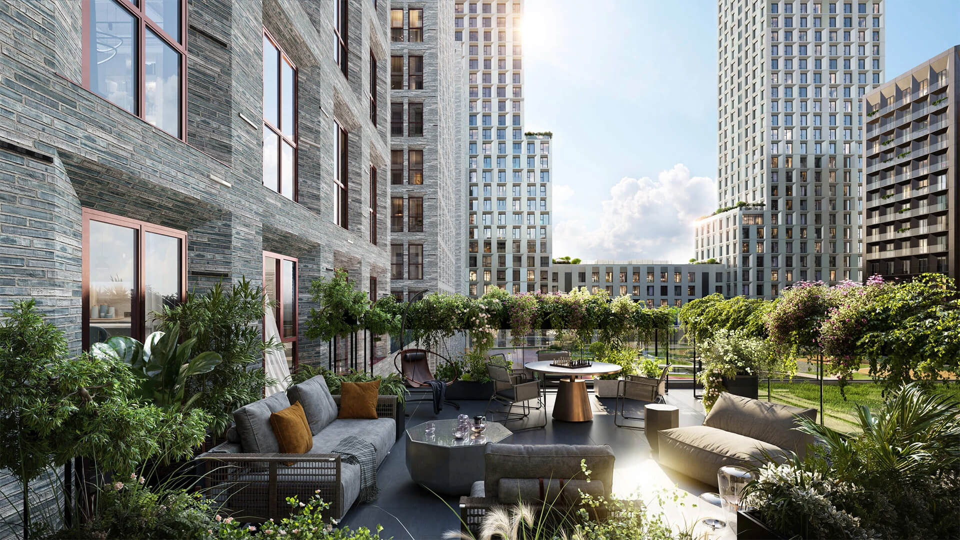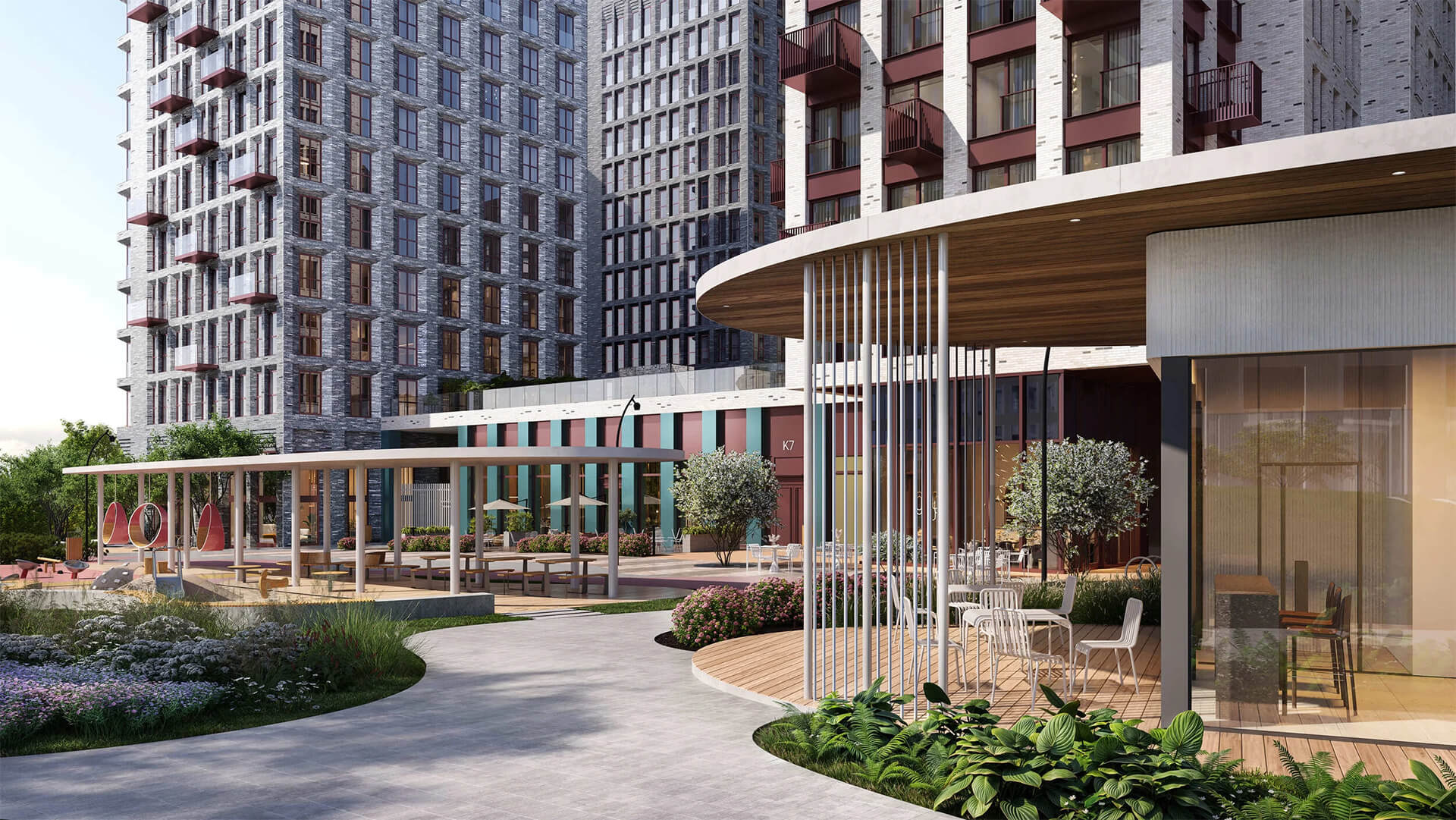 Архитектурная концепция ориентирована не только на внешний облик, но и на комфорт жителей. На первых этажах размещаются общественные пространства и сервисные функции, интегрированные в общую среду. Продуманная навигация и логика входных групп позволяют легко ориентироваться внутри комплекса. Важной частью архитектуры стало сочетание приватных квартирных пространств и открытых общественных зон, что создаёт баланс между личной жизнью и активным сообществом. Такой подход формирует уникальный городской ландшафт, где архитектура становится продолжением образа жизни.