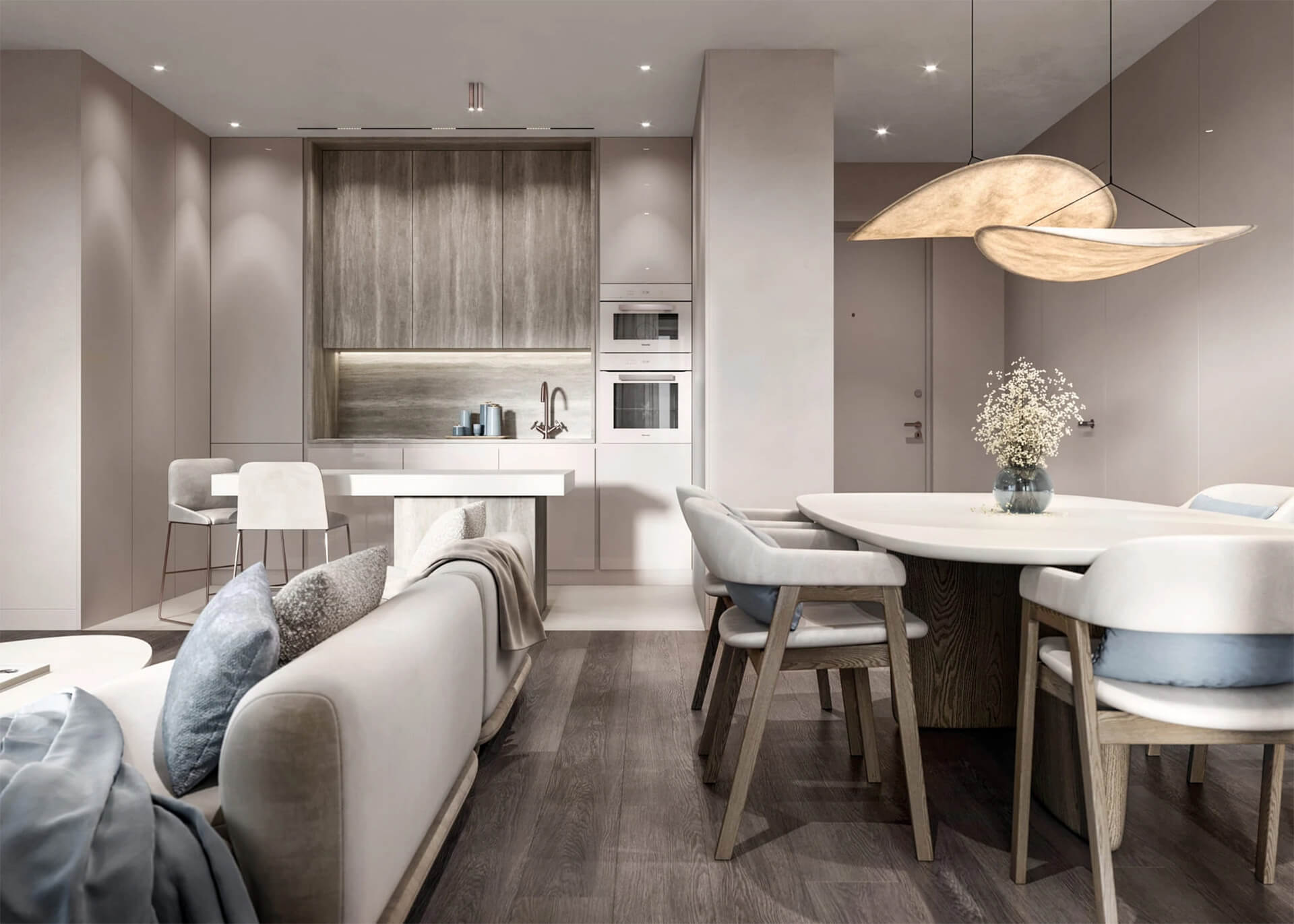 Особенностью проекта является отделка в формате white-box, которая позволяет владельцам сразу приступить к реализации собственных дизайнерских идей. В квартирах уже выполнены основные подготовительные работы: выровнены стены, сделана стяжка пола, установлены окна и радиаторы. Это сокращает время ремонта и открывает возможности для индивидуального оформления пространства. В планировках предусмотрены мастер-спальни с гардеробными, постирочные зоны, просторные кухни-гостиные и дополнительные помещения, которые можно адаптировать под конкретные нужды семьи.